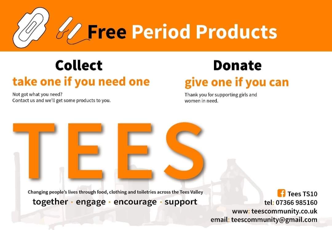 TEES CIO started a period poverty campaign in 2018 to support people across the borough with FREE access to period products. We placed donation points across the region to gain access to products donated to Tees Period Poverty Campaign TPP from the public.